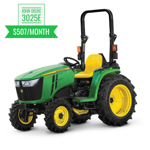 * See the Limited Powertrain Warranty for new John Deere Sub-Compact and Compact Utility Tractors at dealer for complete details. Monthly payments do not include attachments or implements featured in product images. Payment specials only valid in dealer's AOR. Pricing not valid at Hawaii locations. Financing offer ends November 2, 2025. Subject to approved installment credit with John Deere Financial. All non-3R packages factored at 0% interest for 84 months; all 3R packages are factored at 0.9% interest for 84 months. The quoted payment per month will create an estimated total of payments for the transaction and a repayment period of 84 months if only the minimum required payment is made. Taxes, freight, setup and delivery charges could increase monthly payment. Incentives vary per tractor model. Some restrictions apply. See dealer for details.